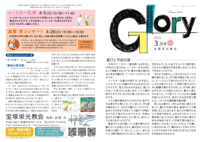 教会からのニュースレター『Glory』を毎月発刊しています。