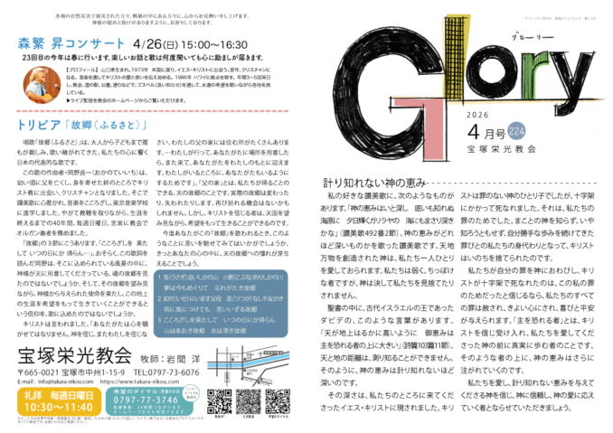 教会からのニュースレター『Glory』を毎月発刊しています。
