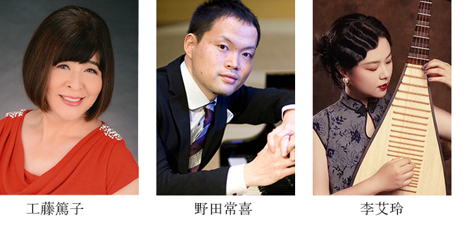今年は、工藤篤子さん、野田常喜さんに加えて、中国琵琶奏者の李艾玲(り あいりん)さんをお呼びします。木管楽器のようなやわらかく深みのある賛美、瑞々しいピアノ演奏、中国琵琶の透き通る音色をお楽しみください。(ライブ配信も行います。コンサート当日、当ホームページのチャペルコンサートページよりご覧いただけます。)